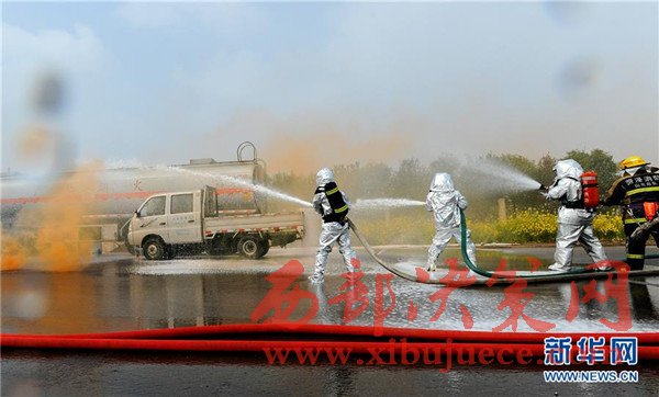 當(dāng)日,山東省菏澤市消防、交通等部門為有效應(yīng)對?;返缆愤\(yùn)輸突發(fā)事件,提高應(yīng)急救援和協(xié)調(diào)能力,聯(lián)合開展?;愤\(yùn)輸企業(yè)事故應(yīng)急救援演練,出動(dòng)消防、救護(hù)等車輛10余臺(tái),近百人參加演練。