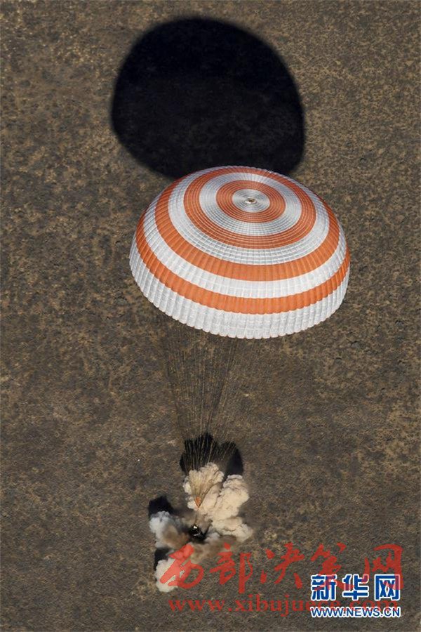 4月10日,在哈薩克斯坦杰茲卡茲甘附近,宇航員乘坐的“聯(lián)盟MS-02”飛船正在著陸。10日,三名宇航員從國際空間站成功返回地球,并在哈薩克斯坦著陸。