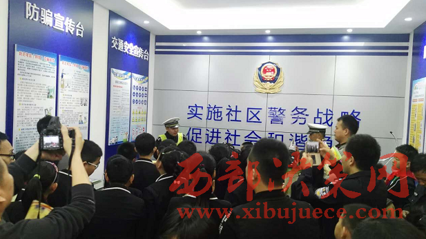 西部決策網(wǎng)-西部大開發(fā)訊(帥華鋒 劉恒)4月19日上午,寶雞市金臺區(qū)石油小學(xué)5年級學(xué)生在老師的帶領(lǐng)下參觀了東風(fēng)路派出所陳倉園社區(qū)警務(wù)室。來自金臺交警大隊、金臺消防大隊和東風(fēng)路派出所民警現(xiàn)場用生動活潑的語言給小學(xué)生們上了一堂社會實踐課。