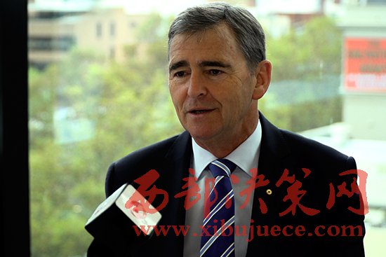 澳大利亞中國工商業(yè)委員會主席、維多利亞州前州長約翰·布倫比接受記者采訪