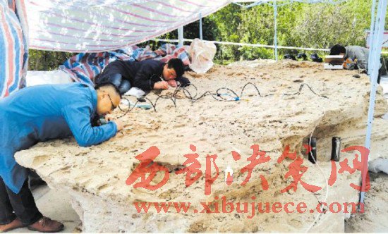 哈密科考隊(duì)隊(duì)員周紅嬌介紹,從2006年起,科考隊(duì)在哈密魔鬼城一帶搜尋早白堊紀(jì)翼龍以及其它恐龍化石,2016年10月,科考隊(duì)在魔鬼城發(fā)現(xiàn)了這個(gè)化石界的“大塊頭”。當(dāng)時(shí)我們是在一處坍塌的雅丹地貌上發(fā)現(xiàn)的,已被風(fēng)化得很嚴(yán)重,如不及時(shí)保護(hù),很可能會受到更大損害。在與哈密博物館協(xié)商后,于當(dāng)年11月16日,將其運(yùn)送到哈密博物館,今年4月份開始修復(fù)。”周紅嬌說,修復(fù)時(shí),先使用機(jī)械設(shè)備清理化石周圍的圍巖,因?yàn)轱L(fēng)化比較嚴(yán)重,表層比較脆弱,因此修復(fù)時(shí)要十分小心,最后用氣吹和手捻手動清理。清理完畢后,會噴涂一層保護(hù)膠,用來保護(hù)化石。