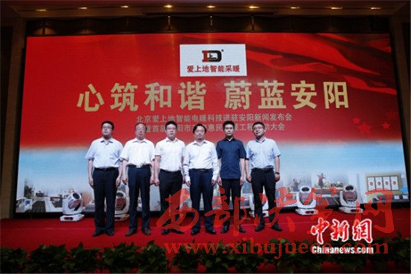近日,北京愛上地智能電暖科技進(jìn)駐安陽新聞發(fā)布會(huì)在安陽舉辦,本次發(fā)布會(huì)主題為——“心筑和諧蔚藍(lán)安陽”,旨在通過加快推進(jìn)清潔取暖,讓民心更暖天更藍(lán)。安陽市人民政府副市長田海濤、安陽市殷都區(qū)委常委、常務(wù)副區(qū)長馬衛(wèi)、殷都區(qū)商務(wù)局局長李昳嫻、北京愛上地科技有限公司董事長叢建光參加了發(fā)布會(huì)。