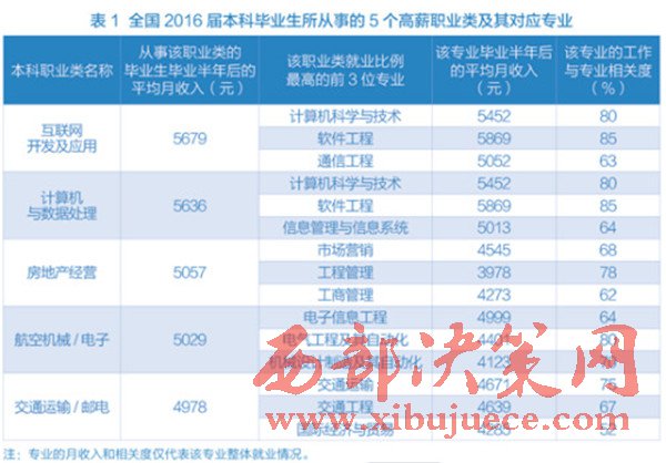 近日,麥可思研究院發(fā)布了一份有關(guān)中國大學(xué)畢業(yè)生收入情況的調(diào)查報告。數(shù)據(jù)顯示,在2016屆本科畢業(yè)生從事的職業(yè)類別中,“互聯(lián)網(wǎng)開發(fā)及應(yīng)用”領(lǐng)跑職業(yè)高薪榜,畢業(yè)半年后平均月薪達(dá)5679元,此外,“房地產(chǎn)經(jīng)營”也在高薪榜前列。