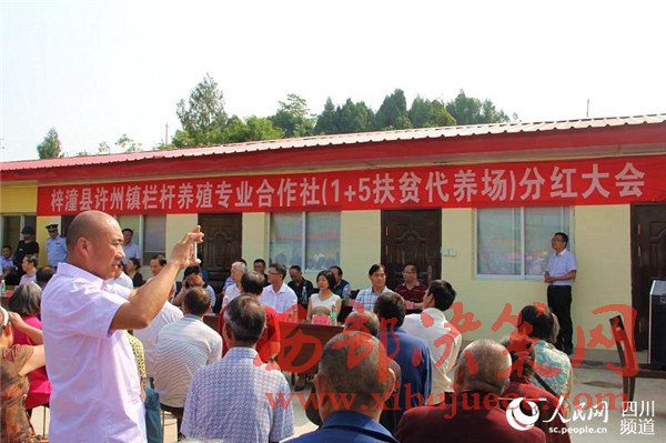 “賈婆婆,你還是數(shù)一下,看得不得少兩張喲!”5月19日,在綿陽(yáng)市梓潼縣許州鎮(zhèn)欄桿養(yǎng)殖扶貧專業(yè)合作社(以下稱“欄桿合作社”)第一次分紅大會(huì)現(xiàn)場(chǎng),73歲的賈國(guó)芳老人剛剛領(lǐng)到分紅金,一旁的村民向她開(kāi)起了玩笑。賈國(guó)芳認(rèn)真數(shù)著手中的現(xiàn)金,數(shù)完后,她聲音有些顫抖的說(shuō):“21張,2100元,不會(huì)少,感謝黨和政府為我們貧困家庭著想!”她的話音剛落,雷鳴般的掌聲在現(xiàn)場(chǎng)響起。