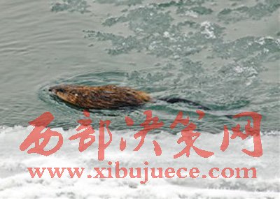 一只河貍在剛消融的冰水中暢游。布爾根河貍國家級自然保護區(qū)管理局供圖