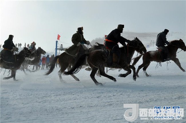 11月25日,在內(nèi)蒙古牙克石鳳凰山開(kāi)雪節(jié)現(xiàn)場(chǎng),騎手在進(jìn)行賽馬表演。