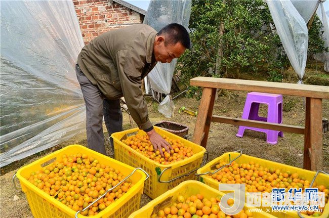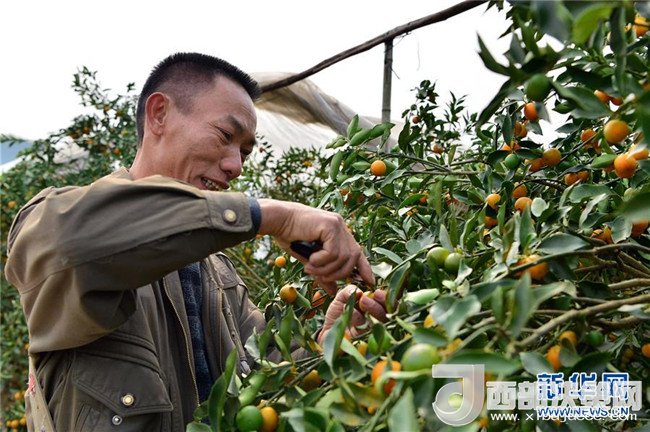 近年來,廣西融安縣因地制宜,把金桔列為扶貧增收的重要產(chǎn)業(yè),通過農(nóng)業(yè)獎補(bǔ)政策、專業(yè)種植技術(shù)培訓(xùn)等鼓勵貧困戶種植金桔,助力脫貧。融安縣大將鎮(zhèn)雅仕村的貧困戶漆昭賢,曾常年在外地打工,生活條件艱苦。2014年在縣里政策引導(dǎo)下,他返鄉(xiāng)種植金桔,并獲得專項補(bǔ)貼和無息貸款,連續(xù)三年參加縣農(nóng)業(yè)局等單位舉辦的種植技術(shù)培訓(xùn)班。如今,漆昭賢不僅在自己的地里種金桔,還承包了周圍農(nóng)戶的土地,種植面積十余畝,今年預(yù)計產(chǎn)量可達(dá)16000斤,純收入有望達(dá)到4萬元。記者李絢麗攝