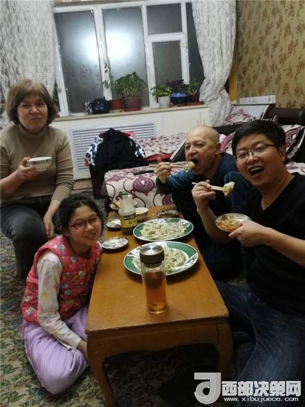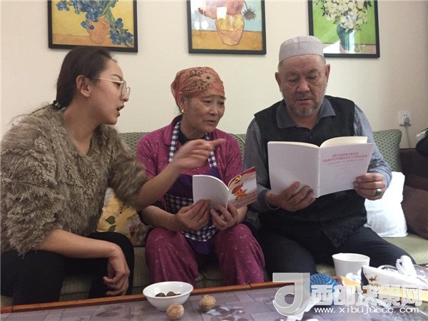 傍晚,一大群來自不同民族,不同單位的新疆兒女聚在了一起,紛紛加入到這個民族團結(jié)的大聚會里,彈一首歡快悅耳的冬不拉,舞一曲深情優(yōu)美的賽乃姆,唱一首民族團結(jié)的贊歌,將整個聚會推向高潮。賽買提·阿合買提高興地說:“我今天太開心了!這個結(jié)婚紀念日太有意義了,你的親戚,我的親戚,變成了我們的親戚,以后這就是你們的家,你們要經(jīng)常來??!” 趁著大家都在興頭上,韓莉書記又拿出學校專門印制的《不忘初心 牢記使命-黨的十九大精神進校園讀本》,熱情地為親戚們宣傳起十九大精神,給大家講起黨的好政策來。在得知艾來提·賽買提目前還沒有找到合適的工作,沒有穩(wěn)定收入的情況后,大家立刻表示愿意幫助他早日找到合適的工作,幫助他們解決最實際的困難,把溫暖送到他們的心坎中。大家唱唱跳跳,說說笑笑,其樂融融,在互幫互助中讓民族團結(jié)之花越開越艷。