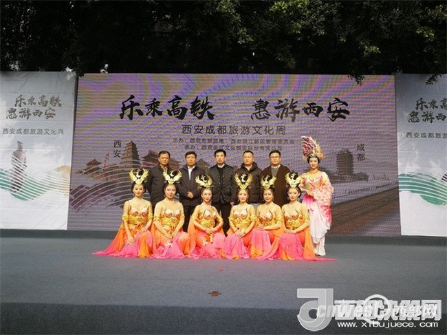 2017年12月13-17日,由西安市旅游發(fā)展委員會(huì)、西安曲江新區(qū)管理委員會(huì)主辦,西安曲江文化旅游股份有限公司承辦的“樂(lè)乘高鐵·惠游西安”西安5折歡游季西成高鐵系列路演活動(dòng),分別在廣元利州廣場(chǎng)、綿陽(yáng)鐵牛廣場(chǎng)、成都寬窄巷子?xùn)|廣場(chǎng)、重慶觀音橋廣場(chǎng)等地精彩上演。巡演向四川、重慶的父老鄉(xiāng)親們介紹了西安豐富的旅游資源,展現(xiàn)了千年古都地靈人杰的文化底蘊(yùn)和生氣盎然的城市魅力。四城路演活動(dòng)共吸引了近五萬(wàn)當(dāng)?shù)厥忻裼慰汀?