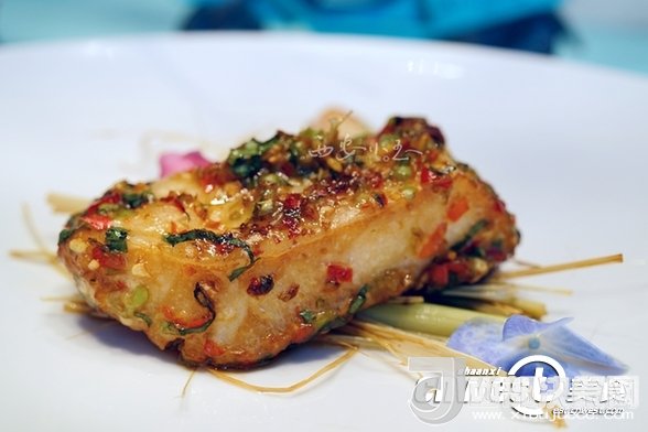 銀鱈魚用來(lái)自西雙版納的香料腌漬后,進(jìn)行烤制,風(fēng)味獨(dú)特,鮮中帶辣。