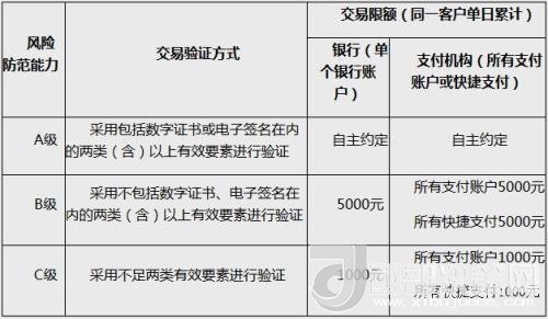動態(tài)條碼支付的風(fēng)險(xiǎn)防范能力分級及交易限額。截圖自中國人民銀行網(wǎng)站