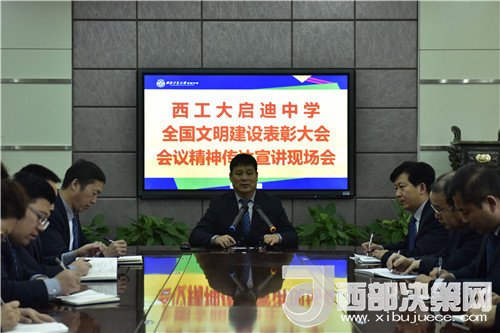 11月17、18日,中央電視臺(tái)《新聞聯(lián)播》的頭條新聞讓西北工業(yè)大學(xué)啟迪中學(xué)內(nèi)外為之沸騰:“王萬(wàn)斌校長(zhǎng)作為第四屆全國(guó)未成年人思想道德建設(shè)工作先進(jìn)工作者的受獎(jiǎng)代表,在人民大會(huì)堂接受習(xí)近平總書(shū)記等黨和國(guó)家領(lǐng)導(dǎo)人的接見(jiàn)了。”西北工業(yè)大學(xué)啟迪中學(xué)師生們欣喜而熱烈地議論著,初冬的寒氣卻絲毫沒(méi)有影響師生們的熱情。