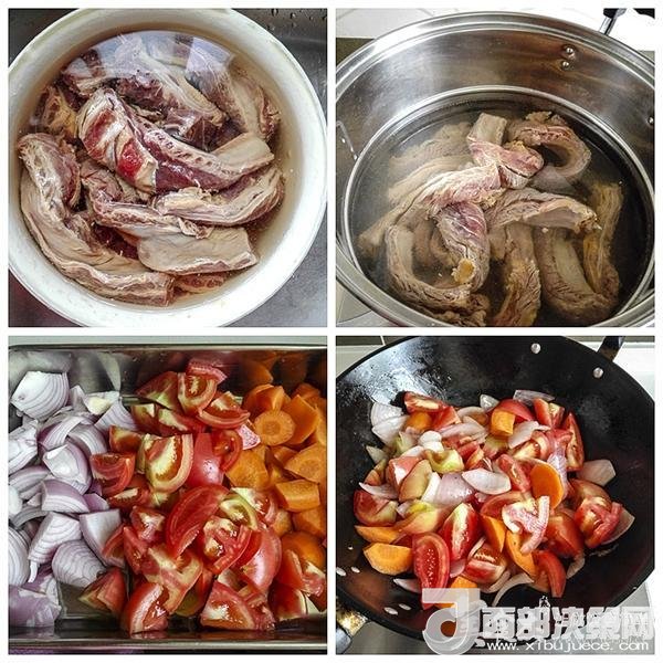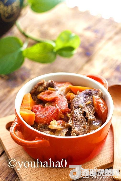 食材:牛腩500克,西紅柿800克,洋蔥一個(gè),胡蘿卜一個(gè),紅酒100克,鹽8克,植物油2湯匙。
