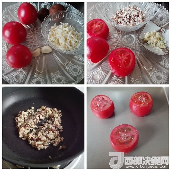 食材:西紅柿3個,香菇2朵,蒜2瓣,鹽適量,黑胡椒碎適量,無味植物油首選,帕爾瑪干酪或馬蘇里拉奶酪適量。