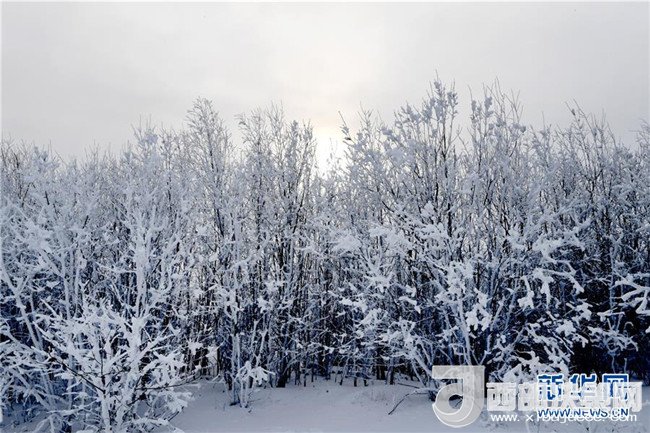 阿爾山市白狼崗霧凇景觀(1月9日攝)。