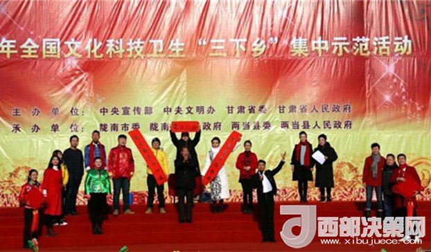 西部決策網(wǎng)-西部大開(kāi)發(fā)訊(帥華鋒 通訊員 馬存福 漆曉明) 1月19日,2018年全國(guó)文化科技衛(wèi)生“三下鄉(xiāng)”集中示范活動(dòng)在兩當(dāng)縣日月廣場(chǎng)舉行。中央文明辦專職副主任夏偉東,副省長(zhǎng)李斌,中宣部宣教局局長(zhǎng)常勃,中央文明辦一局局長(zhǎng)張志勇,省委宣傳部副部長(zhǎng)李均,市委書記孫雪濤,市委副書記、市長(zhǎng)崔景瑜,省文明辦主任羅鳳存,市委常委、宣傳部長(zhǎng)李興華等出席活動(dòng)。