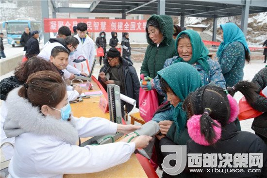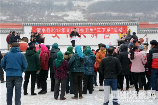 西部決策網(wǎng)-西部大開發(fā)訊(帥華鋒 通訊員 馬存福 楊兆康)大雪紛飛雪飄揚(yáng),過(guò)了臘八就是年。1月24日,由清水縣委宣傳部、文明辦、文廣局、縣委黨校、文化館、農(nóng)業(yè)局、縣醫(yī)院、中醫(yī)院、婦保站、文聯(lián)等單位組織開展的2018年文化科技衛(wèi)生“三下鄉(xiāng)”活動(dòng)走進(jìn)秦亭鎮(zhèn)全莊村。