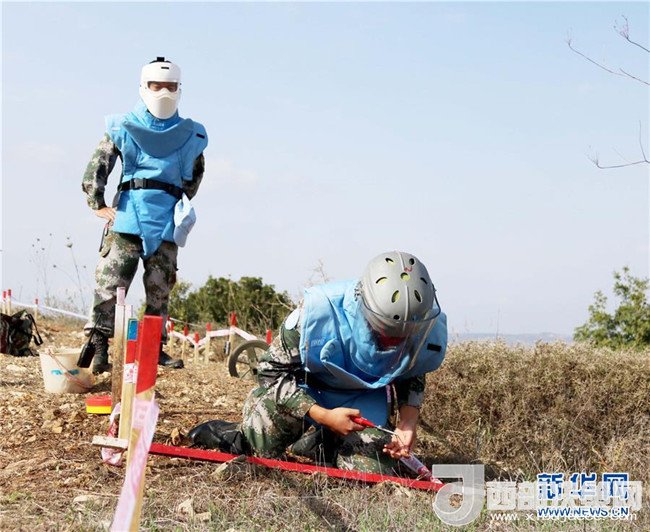 2017年11月8日,在黎巴嫩南部黎以邊境“藍線”附近的掃雷作業(yè)點,中國工兵新作業(yè)手在組長的指導(dǎo)下進行掃雷作業(yè)。2017年10月初,中國維和部隊接到聯(lián)合國駐黎巴嫩臨時部隊(聯(lián)黎部隊)任務(wù),要求清排一片面積超過1萬平方米、埋有千余枚防步兵地雷的雷場。(董永康攝)
