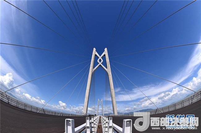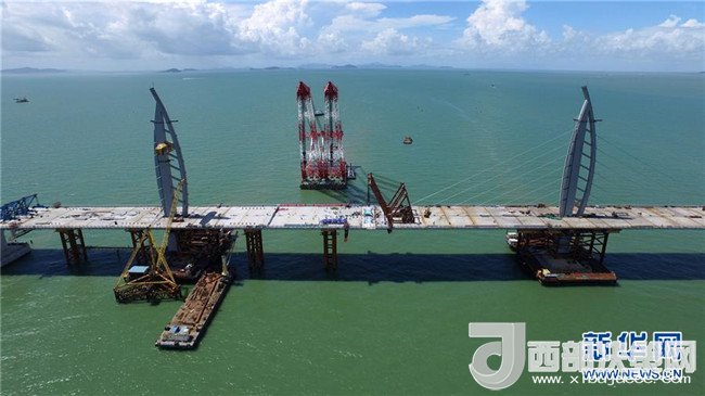 港珠澳大橋上的“中國(guó)結(jié)”造型橋塔(2017年7月5日攝)。記者 梁旭 攝