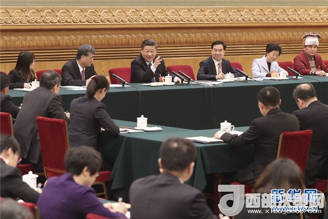 3月7日,中共中央總書記、國家主席、中央軍委主席習(xí)近平參加十三屆全國人大一次會議廣東代表團(tuán)的審議。 新華社發(fā)(盛佳鵬 攝)