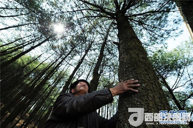 3月10日,沙子坡林場的老護林員王明才在看他33年前親手種下的華山松。