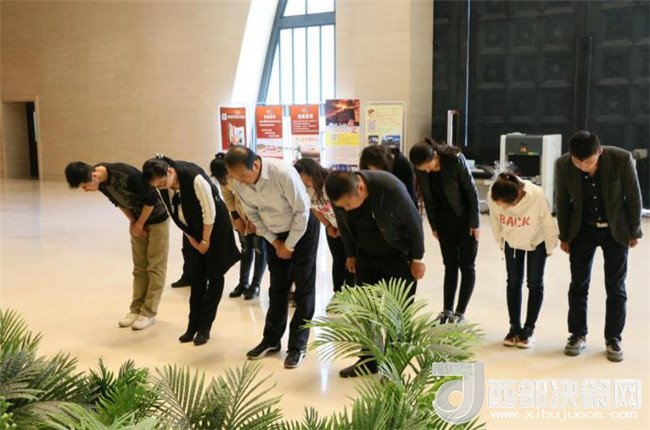 西部決策網——西部大開發(fā)訊(帥華鋒 李海瑞 通訊員 趙高銪)“南北山頭多墓田,清明祭掃各紛然。”在2018年“清明節(jié)”即將到來之際,為深切緬懷陜甘邊革命先輩的崇高風范和豐功偉績,表達對革命先烈的諄諄敬意和無限哀思。4月2日下午,甘肅慶陽市南梁革命紀念館組織干部職工赴閆洼子四十二烈士墓開展清明祭掃活動,并向新館“五大書記”銅像雕塑致敬默哀。南梁革命紀念館館長聶明靜,副館長王雅麗,以及紀念館在崗干部職工30多人共同參加了祭掃活動。