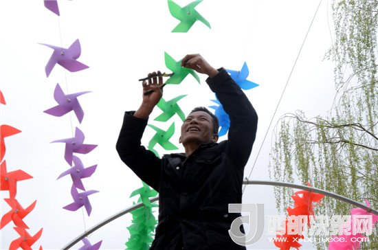 據(jù)現(xiàn)場負責(zé)人介紹,此次風(fēng)車節(jié)共組裝風(fēng)車30萬支用于打造風(fēng)車花海、七彩風(fēng)車長廊、兒童樂園為主題的三處樂園,五顏六色、形態(tài)各異的風(fēng)車組成的“風(fēng)車陣”,古樸的木道長亭組成的“七彩風(fēng)車長廊”,絢麗綻放的桃花組成的“風(fēng)車花海”,形成了浪漫溫馨的童話世界。