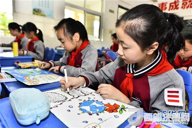 4月19日,安徽省合肥市蜀山區(qū)井崗鎮(zhèn)新城小學(xué)學(xué)生參加“善待地球,童繪藍(lán)天——我與地球的故事”繪畫(huà)活動(dòng)。新華社發(fā)(葛宜年 攝)