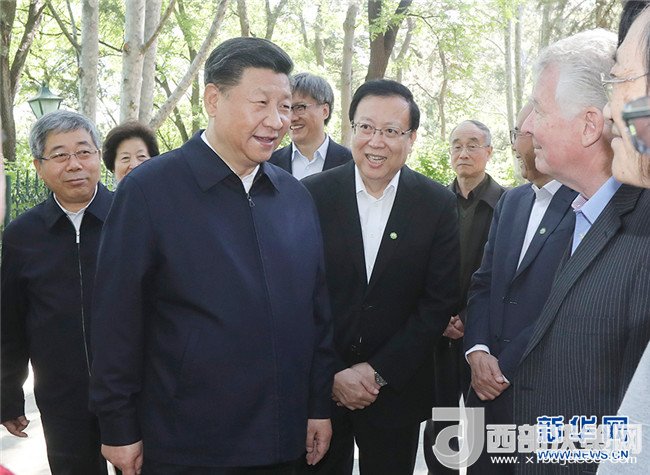 5月2日,中共中央總書記、國家主席、中央軍委主席習(xí)近平來到北京大學(xué)考察。這是習(xí)近平在北京大學(xué)臨湖軒北側(cè)的小庭院看望部分資深教授和中青年教師代表,并同他們親切交談。新華社發(fā)(盛佳鵬攝)