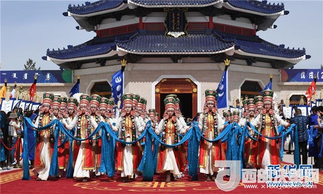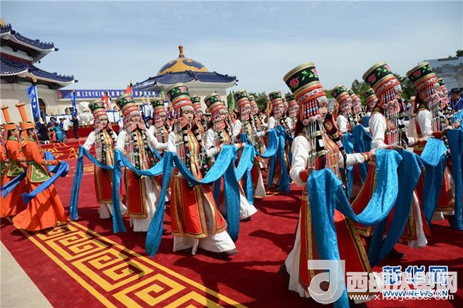 5月6日,在成吉思汗陵,身著盛裝的姑娘手捧哈達(dá)進(jìn)行祭祀活動(dòng)。新華社記者 鄒予 攝