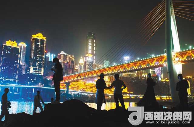四月二十九日,江北區(qū)嘉陵江邊,不少外地游客在此拍攝“魔幻”重慶。 首席記者 崔力 攝(本報(bào)資料照片)