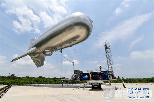 在光啟東莞生態(tài)園的研發(fā)基地,集廣域互聯(lián)網(wǎng)信息傳輸和光學監(jiān)控于一體的“云端號”準備升空(2016年7月7日攝)。新華社記者毛思倩攝
