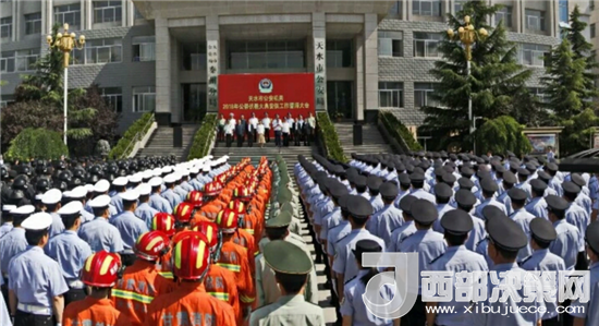 天水市委常委、政法委書記蒲軍,市人大常委會副主任王曉琴,市政協(xié)副主席郭明興,市人民檢察院檢察長張發(fā)魁,市委政法委常務(wù)副書記陳明達(dá),市司法局局長彭德祥,市公安局常務(wù)副局長曹小明等領(lǐng)導(dǎo)出席大會。會議由副市長、市公安局局長馬瑛主持。全市公安機關(guān)各警種460余人列隊參加誓師大會。