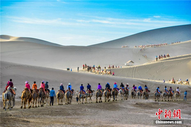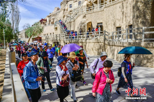 剛剛過去的端午小長(zhǎng)假期間,絲綢之路國(guó)際旅游名城甘肅敦煌迎來旅游高峰,鳴沙山月牙泉人流如織、駝隊(duì)如龍,世界文化遺產(chǎn)莫高窟“門庭若市”。據(jù)敦煌市旅游部門19日統(tǒng)計(jì),今年端午節(jié)期間,敦煌市接待中外游客12.35萬人次,同比增長(zhǎng)35%。其中,莫高窟接待游客21501人次,同比增長(zhǎng)29.44%;鳴沙山月牙泉景區(qū)接待游客24050人次,同比增長(zhǎng)31.86%。