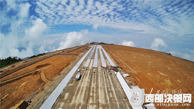 “前期遇到的最大障礙就是土石方開(kāi)挖和回填工程。”現(xiàn)場(chǎng)施工管理人員介紹,作為渝東北典型的高填方機(jī)場(chǎng),巫山機(jī)場(chǎng)填筑體最高處達(dá)100余米,整個(gè)擬建場(chǎng)地相對(duì)高差約227.25米,道槽區(qū)最大填高達(dá)50米,施工過(guò)程中需處理的溶洞多達(dá)40處,施工難度極大。在土石方作業(yè)最忙時(shí)每天有近2000人和800多臺(tái)機(jī)具晝夜施工,土石方運(yùn)輸車輛川流不息。