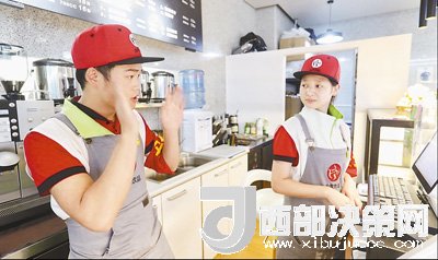 6月21日,在貴陽市貴陽北站一家名為“無聲飲品”的飲料店內(nèi),服務(wù)員在用手語相互交流。從點單到付款,再到制作交遞,店員和顧客間都通過手語或手寫紙條進行交流。這家小店是貴陽市盲聾啞學校的校企合作項目,店內(nèi)所有服務(wù)人員均是聾啞學生。截至目前,貴陽已有4家“無聲飲品”店,為近50名聾啞學生提供了實習和就業(yè)平臺。歐東衢攝