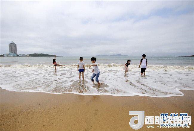 7月1日,人們?cè)谇鄭u第一海水浴場(chǎng)海灘上游玩。新華社記者 李紫恒 攝