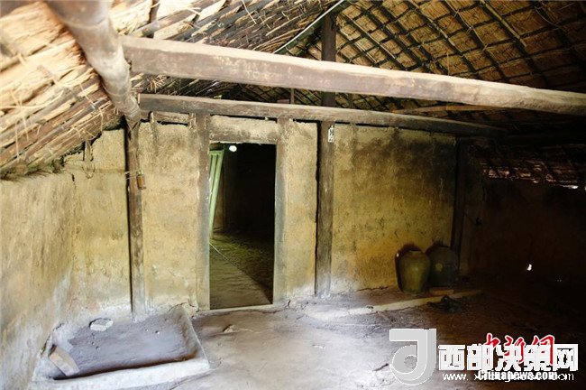 圖為船型屋內(nèi)光線幽暗。屋中間立三根叫“戈額”的木柱象征男人;兩邊立6根較矮的柱子,黎語(yǔ)叫“戈定”,象征女人。 中新社記者 王曉斌 攝