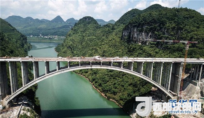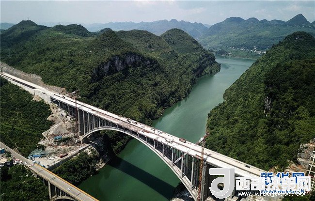 貴州織普高速公路控制性工程——夜郎湖特大橋日前實現(xiàn)全線貫通,預計本月底可全面建成。該橋由貴州橋梁建設集團于2016年5月開始施工,全長391.4米,拱圈凈跨徑210米。據(jù)了解,織普高速全長約52公里,建成后由織金縣到普定縣的車程可從原來的2.5小時縮短到35分鐘,將大幅提高通行效率,進一步推動沿線經(jīng)濟發(fā)展。新華社記者 陶亮 攝