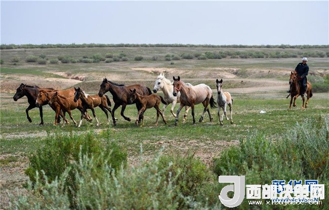 呼日查畢力格在度假營趕著馬群(7月21日攝)。