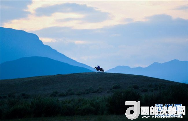 呼日查畢力格和女兒在山丘上騎馬(7月20日攝)。新華社記者彭源攝