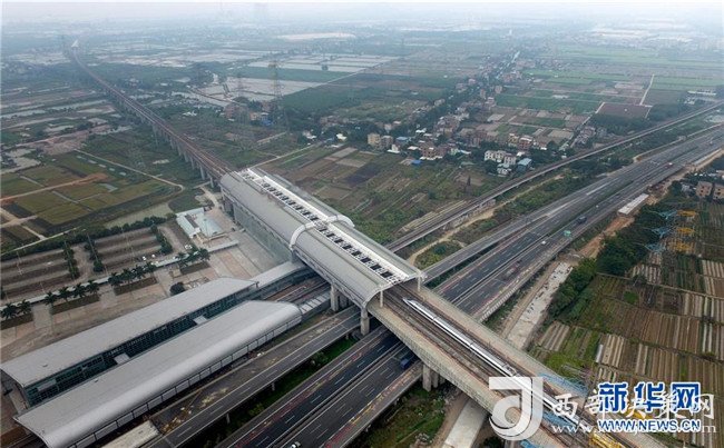 一列高鐵駛進廣深港高鐵廣州慶盛站(2017年12月14日攝)。新華社記者盧漢欣攝