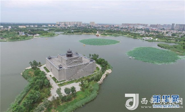 8月19日無人機(jī)拍攝的河北省河間市瀛州公園。