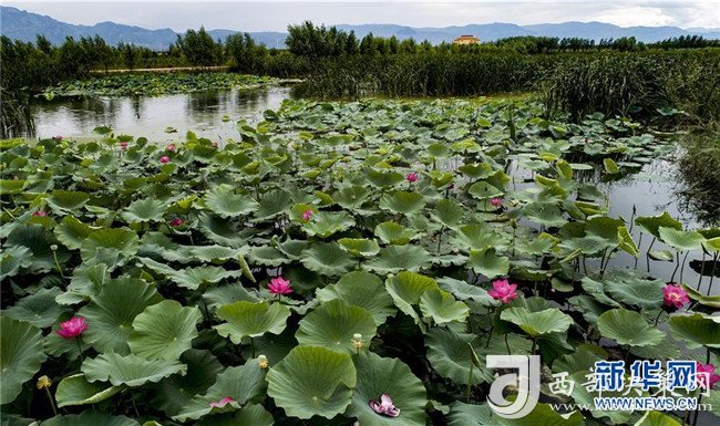 8月22日無(wú)人機(jī)拍攝的廣靈縣壺流河濕地盛開的荷花。新華社記者 陶明 攝