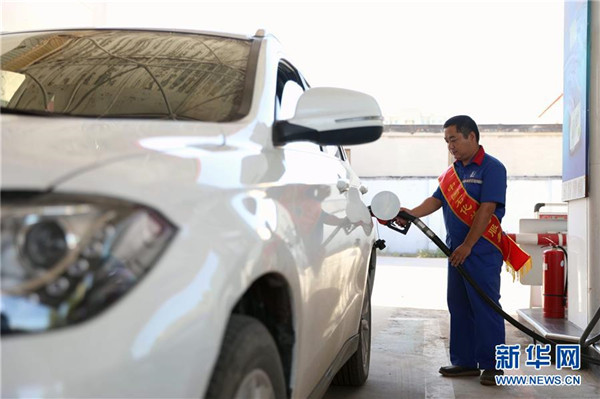 9月3日,河北省任縣一家加油站工作人員給車輛加油。 當(dāng)日,國家發(fā)展改革委發(fā)布消息,按照現(xiàn)行成品油價格形成機制,自2018年9月3日24時起,國內(nèi)汽油、柴油價格每噸分別上調(diào)180元和170元。 新華社發(fā)(宋杰 攝)