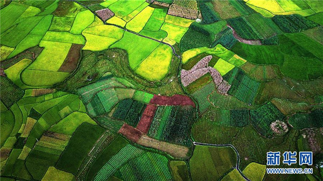 廣西隆林各族自治縣克長(zhǎng)鄉(xiāng)田園景色(9月1日無人機(jī)拍攝)。