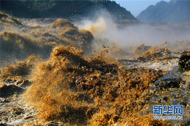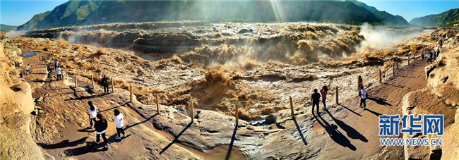入秋以來(lái),受上游降雨影響,陜西宜川黃河壺口瀑布水量大增,出現(xiàn)“山飛海立”、“旱天鳴雷”的自然景觀,引來(lái)眾多游客和攝影愛(ài)好者。(趙潔)