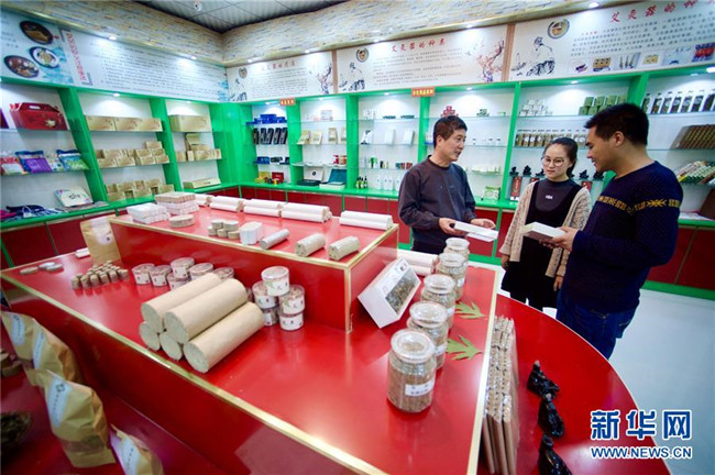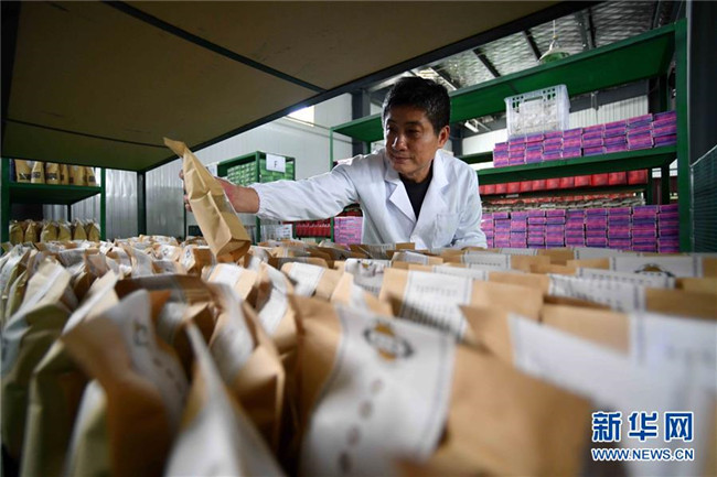 林玉清在寧夏固原市西吉縣寧夏澤艾堂生物科技有限公司查看艾草產(chǎn)品(8月30日攝)。來自福建莆田的林玉清2017年3月在西吉縣成立寧夏澤艾堂生物科技有限公司,依托西吉縣優(yōu)質(zhì)的艾草種植條件,采用“公司+合作社+農(nóng)戶”的訂單農(nóng)業(yè)合作模式,與吉強(qiáng)、新營等鄉(xiāng)鎮(zhèn)種植專業(yè)合作社合作建成艾草種植基地11個、推廣種植艾草6000畝,為當(dāng)?shù)厝罕娒撠氈赂讳伨托侣纷?。新華社記者郭緒雷攝