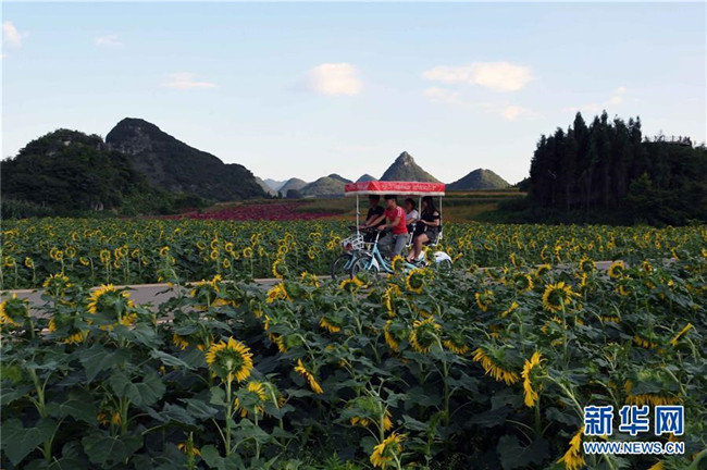 游客在云南羅平七彩花田游覽觀景(9月5日攝)。 新華社記者楊宗友攝