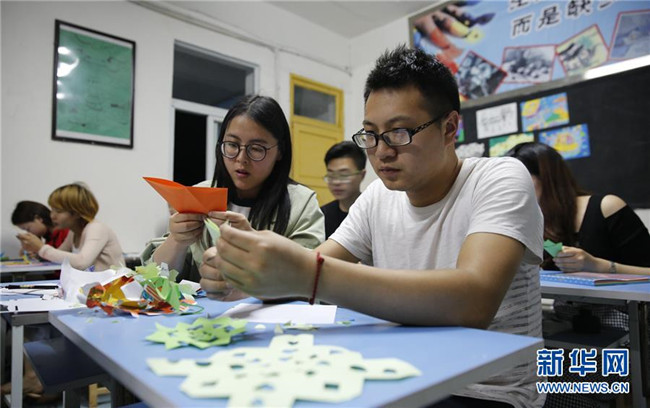 近年來,越來越多的“80后”“90后”教師加入教學隊伍。2017年,在幾名青年教師的倡議下,學校開設(shè)了“教師夜校”,教師們在教學工作之余,每周一至周四的晚上七點半至九點可以參加閱讀、書法、舞蹈等活動,豐富業(yè)余生活的同時,也提升了教師的綜合素質(zhì)。新華社發(fā)(游青 攝)